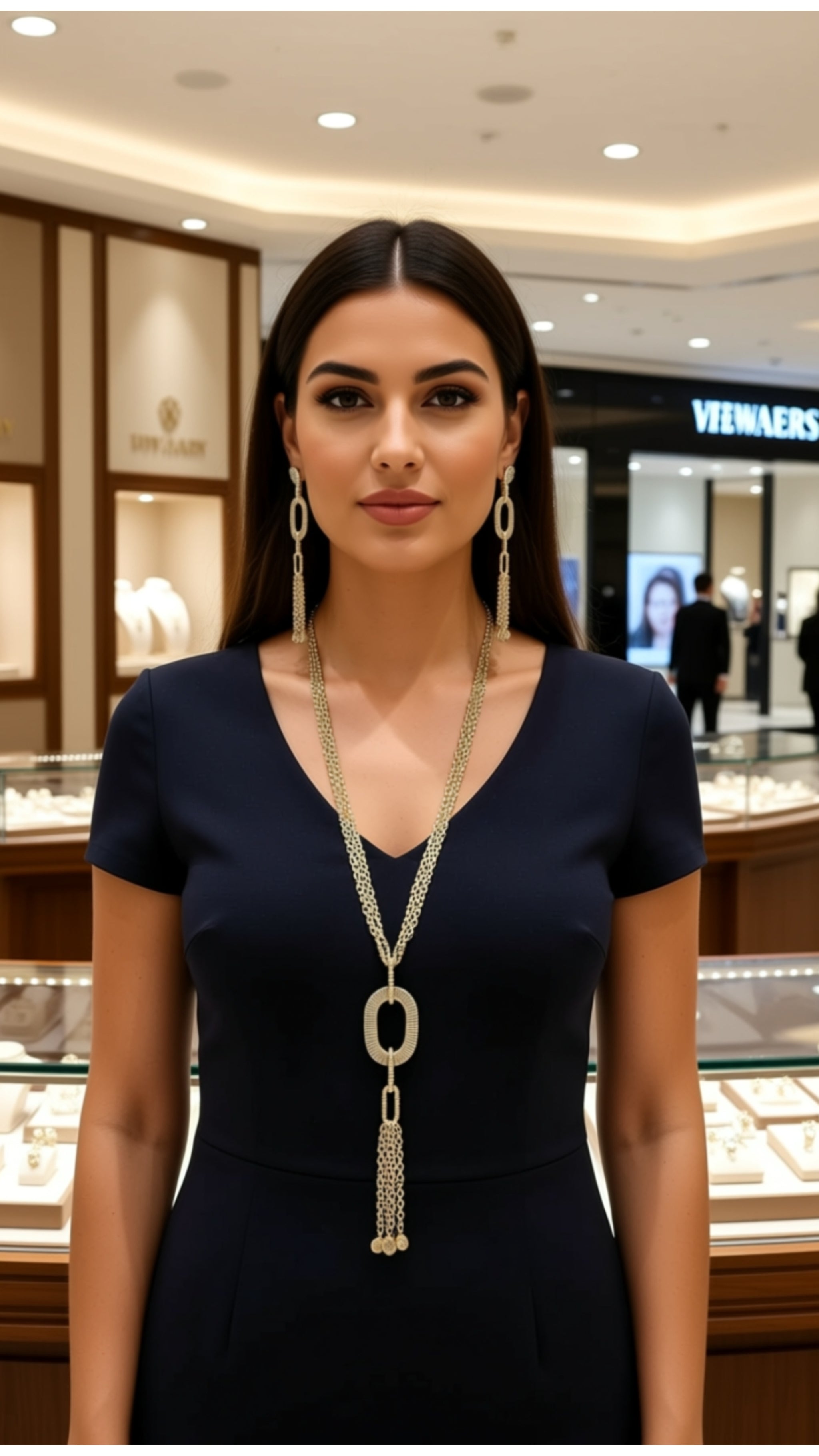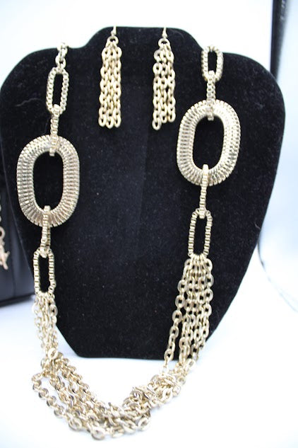 Long Pendant Necklace with Earrings Gold Set